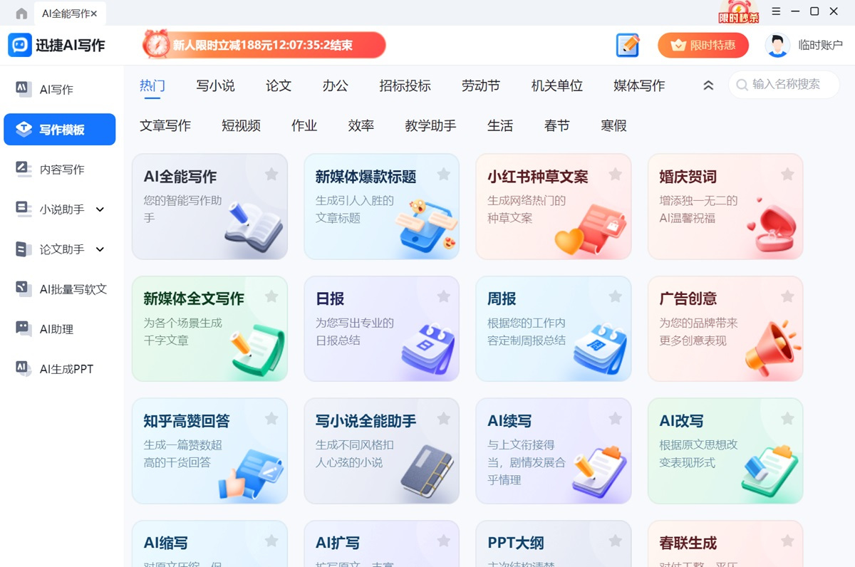 ●海量模板:内置上百种中文模板,覆盖办公、媒体写作、生活、作业等数十种场景。