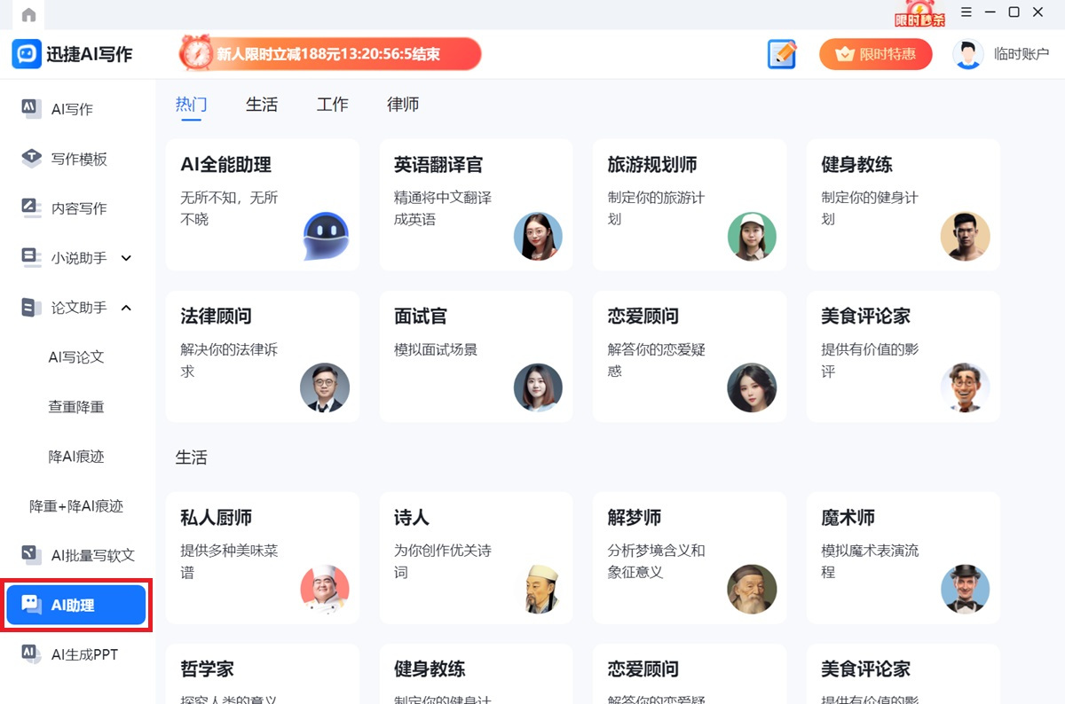 ●AI助理:涵盖生活、工作、律师