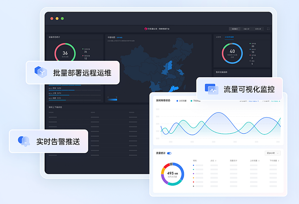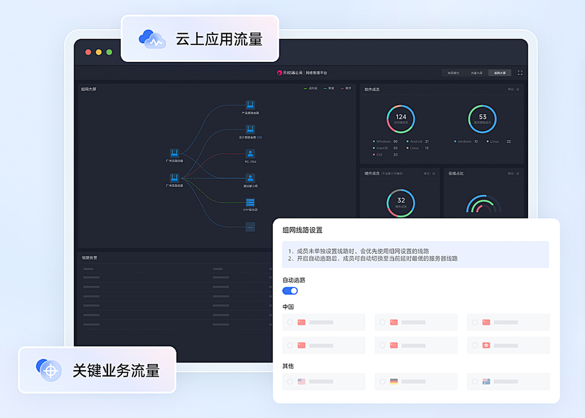 可视化监控大屏,实时监控设备健康度与线路状态、流量品质,快速定位网络问题。
