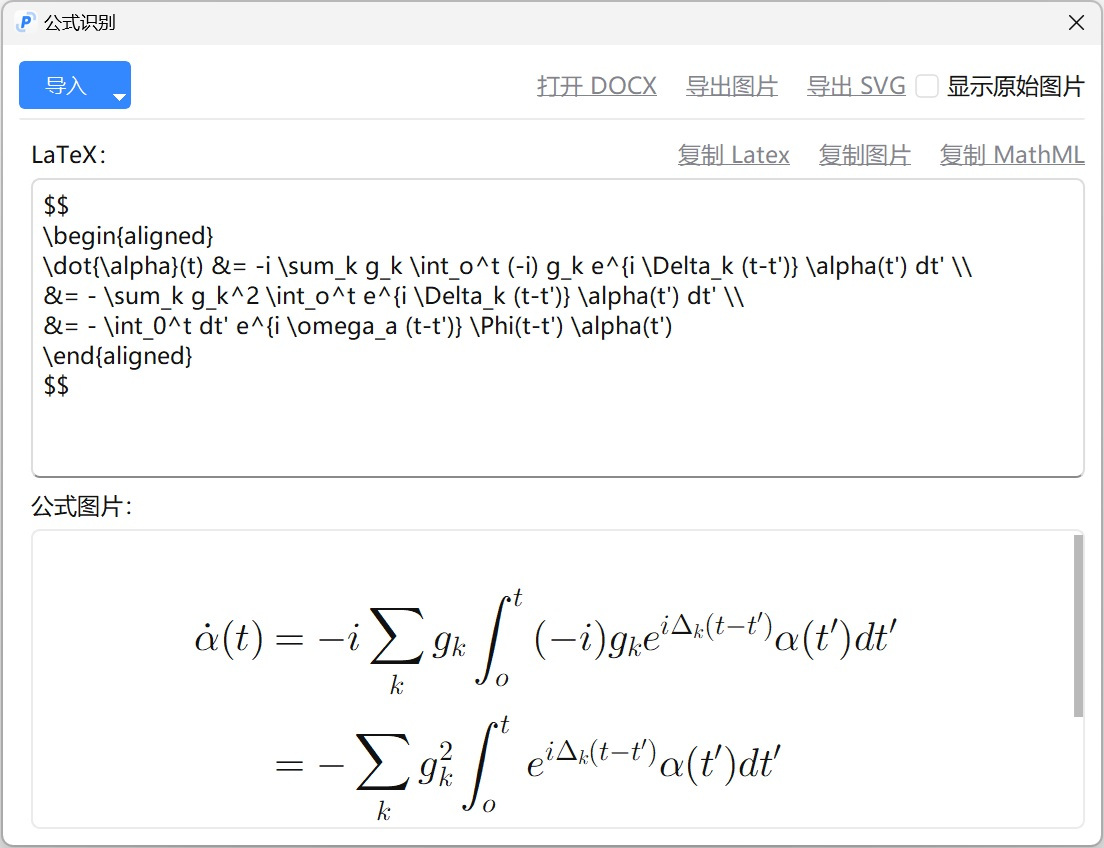 我们为科研人员和学生用户提供了Latex公式识别功能,会员用户可以在截图时通过快捷键Shift + F识别图像里的数学公式为LaTeX代码。