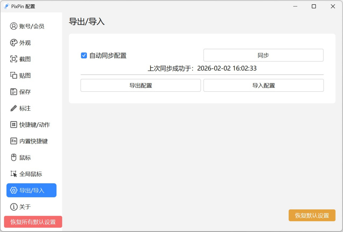 会员用户的配置可自动同步到云端,方便在不同设备上使用相同的配置。