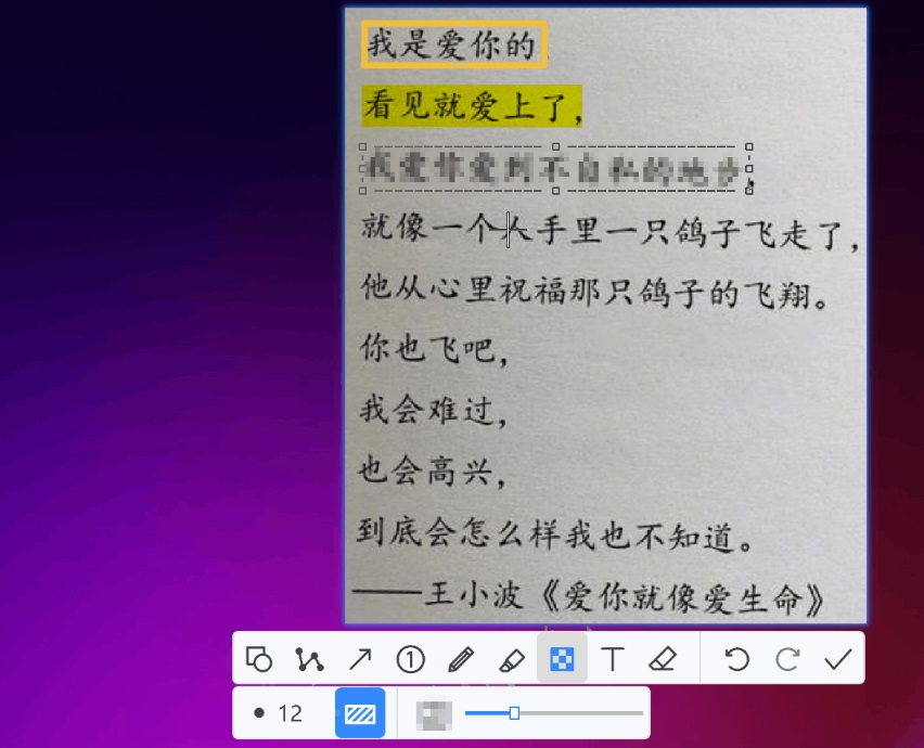 将图片放到网上公开的时候,有一些隐私信息需要隐藏,如果使用马赛克工具会显得很突兀,此时使用PixPin的智能擦除工具能够轻松将隐私信息抹去而不留下痕迹。