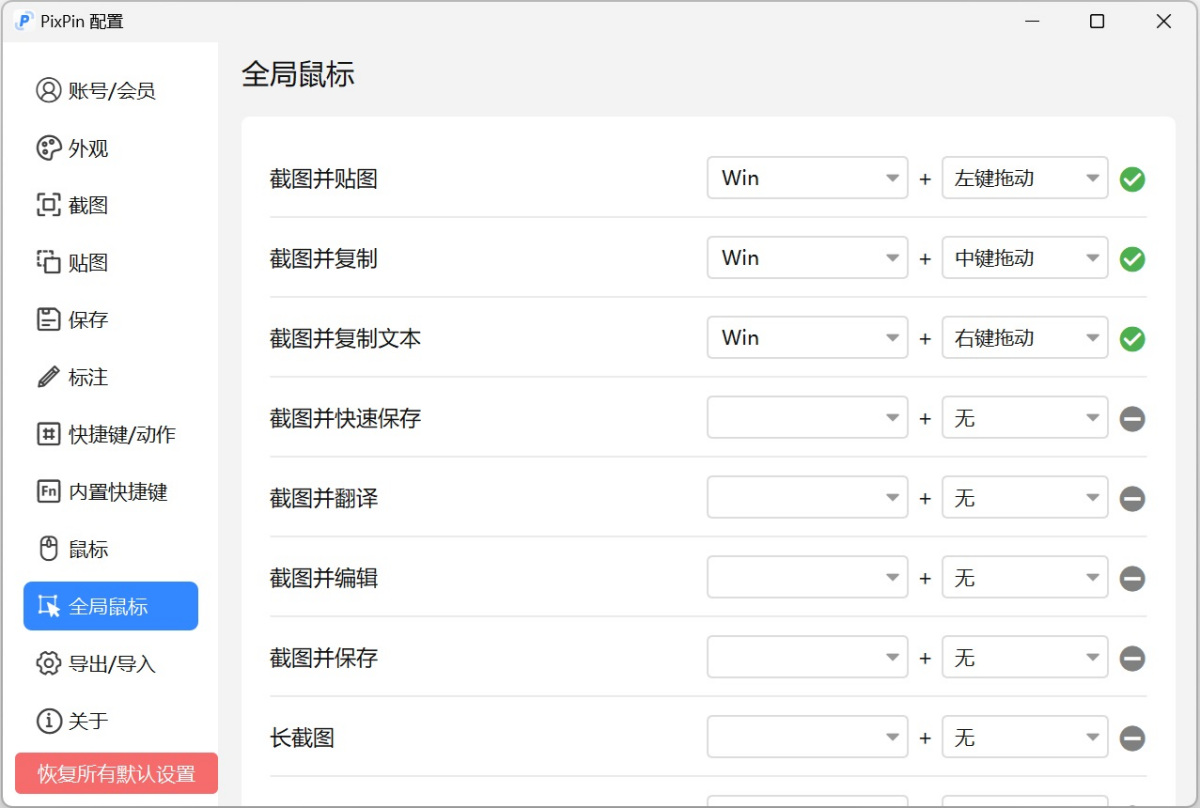 可以在其他程序上通过辅助键+鼠标拖动来执行PixPin的截图相关操作。