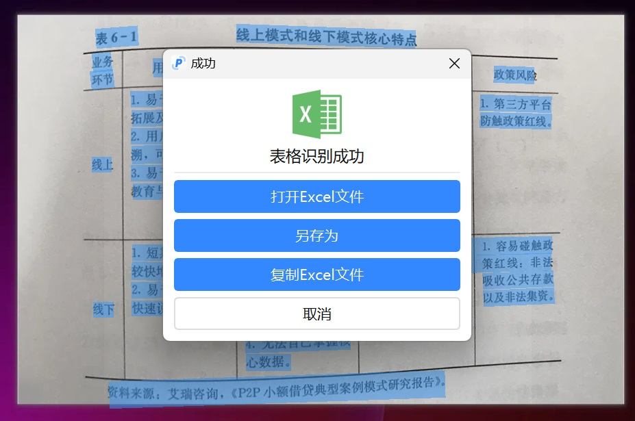 会员用户可以在贴图后通过右键菜单或者在截图时快捷键Shift + Q识别图像里的表格,并以Excel格式保存。