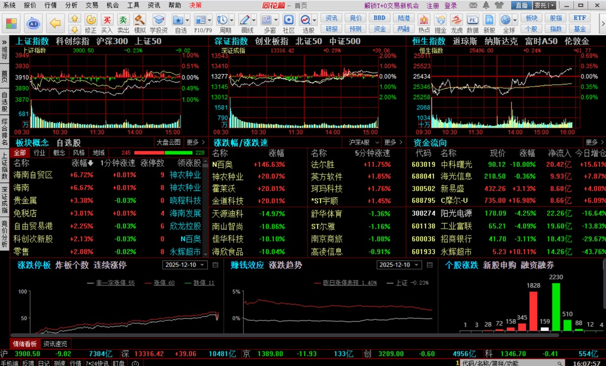 同花顺软件包含大盘对照分析页面、多周期图分析页面、个股全景分析页面,还有K线+分时页面、大字报价报表、多窗看盘页面、主力大单页面、两股对比等页面。