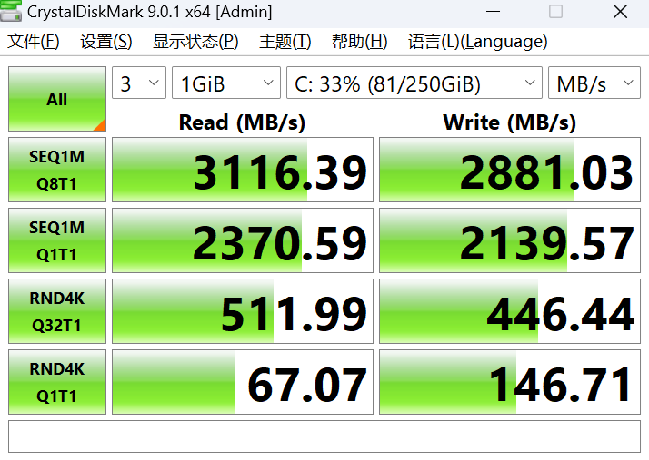 2、同一块硬盘在不同系统、不同接口、不同驱动程序下,测试结果可能会有差异。