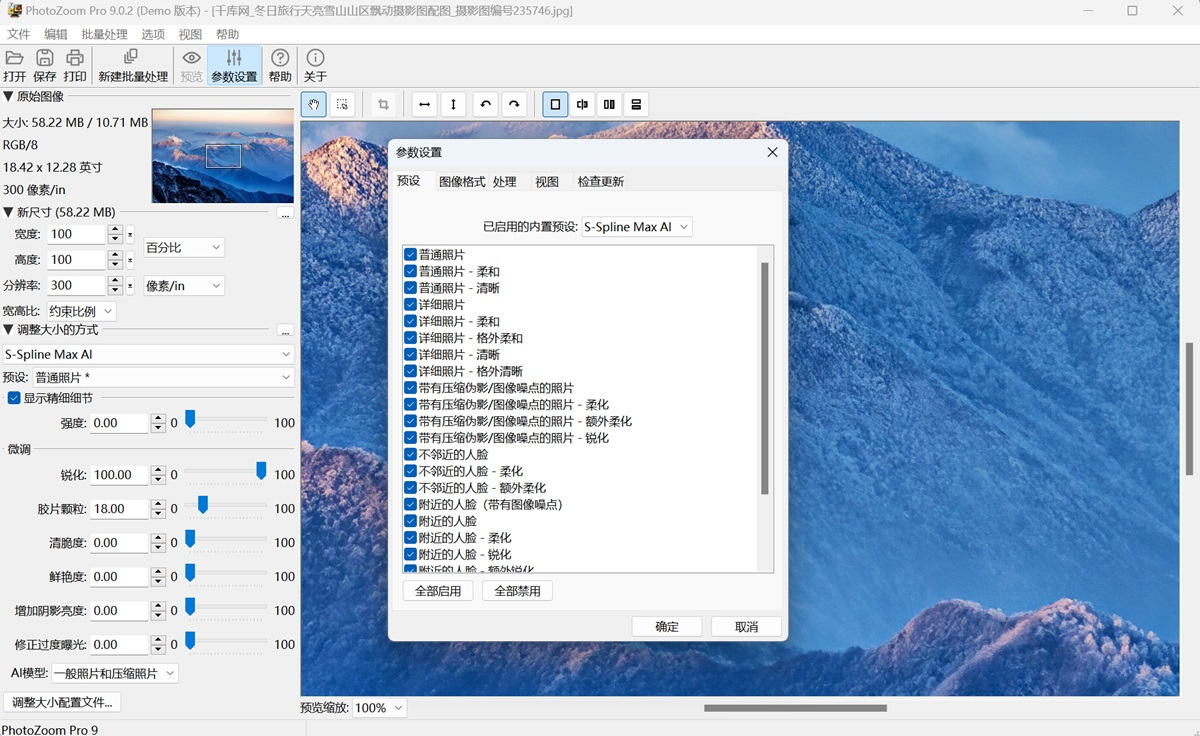 PhotoZoom Pro 9采用S-Spline 独特技术,带来一流的数字图像放大及缩小技术。可以渲染出完美的放大照片,呈现无与伦比的画质效果。使用我们强大易用的软件,您可以创建出锐利清晰的放大图像,避免锯齿状边缘、模糊细节以及不自然的人工效果。PhotoZoom Pro 9可广泛应用于手机照片放大、低像素老照片修复、影像局部剪裁构图优化等场景,是摄影爱好者、档案管理人员、专业影像工作室、设计师等用户的必备工具。