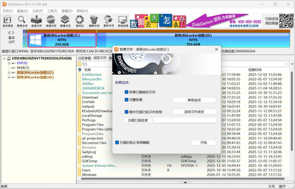 DiskGenius支持备份BitLocker加密分区,为数据提供额外保护。当分区数据出现问题时,可以通过备份文件进行还原。