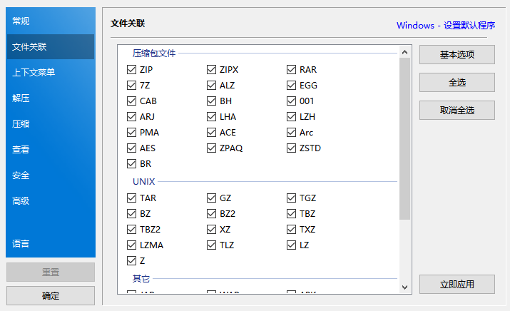 支持的格式: 7Z, ACE, AES, ALZ, ARJ, BH, BIN, BR, BZ, BZ2, CAB, Compound(MSI), DAA(1.0), DEB, EGG, GZ, IMG, ISO, ISZ, LHA, LZ, LZH, LZMA, PMA, RAR, RAR5, SFX(EXE), TAR, TBZ/TBZ2, TGZ, TLZ, TXZ, UDF, WIM, XPI, XZ, Z, ZIP, ZIPX, ZPAQ, PEA, UU, UUE, XXE, ASAR, ZSTD, NSIS