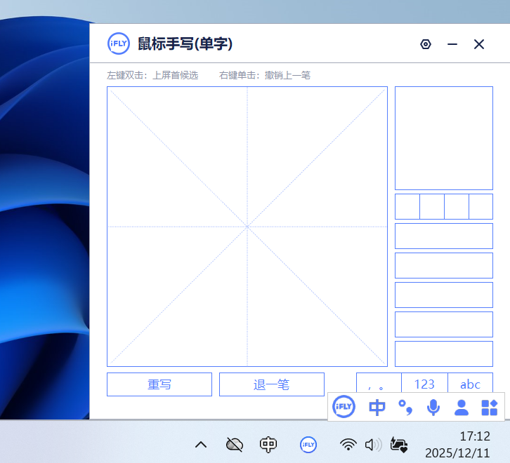 步骤3、鼠标左键双击:选择上屏首候选,右键单击:撤销上一笔