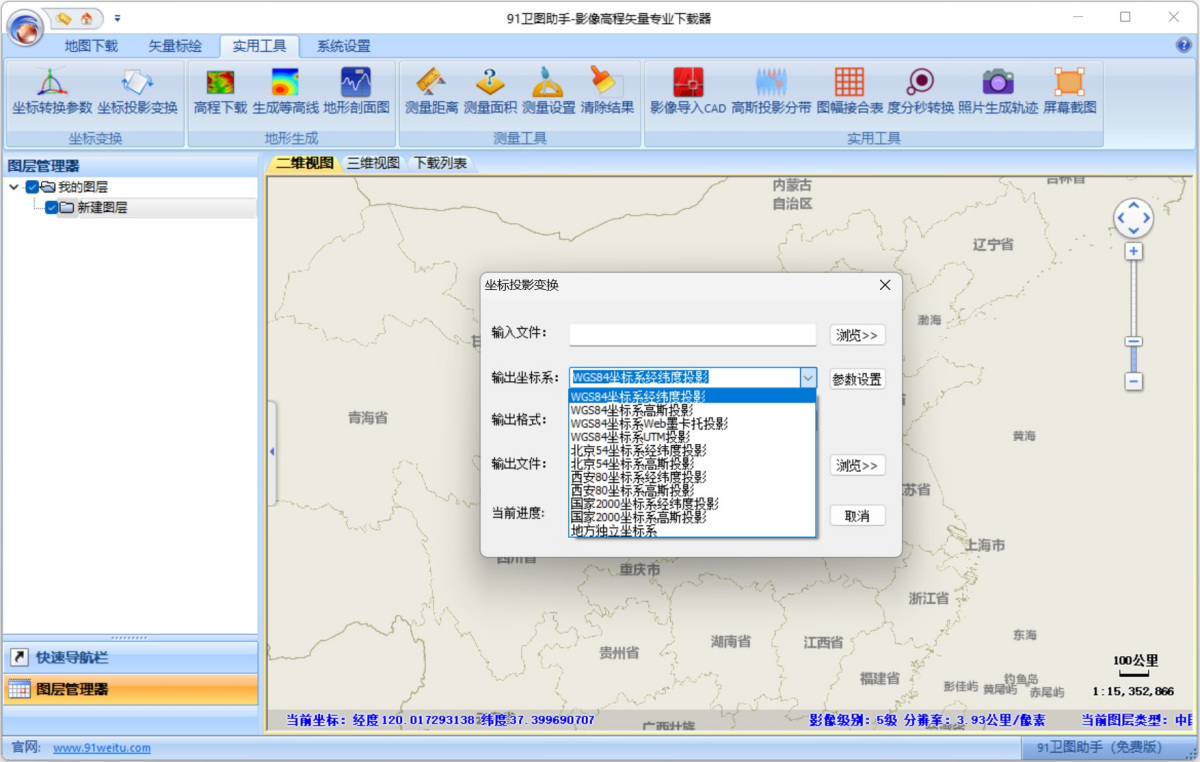 5、坐标投影变换,支持众多坐标系及投影,方便易用