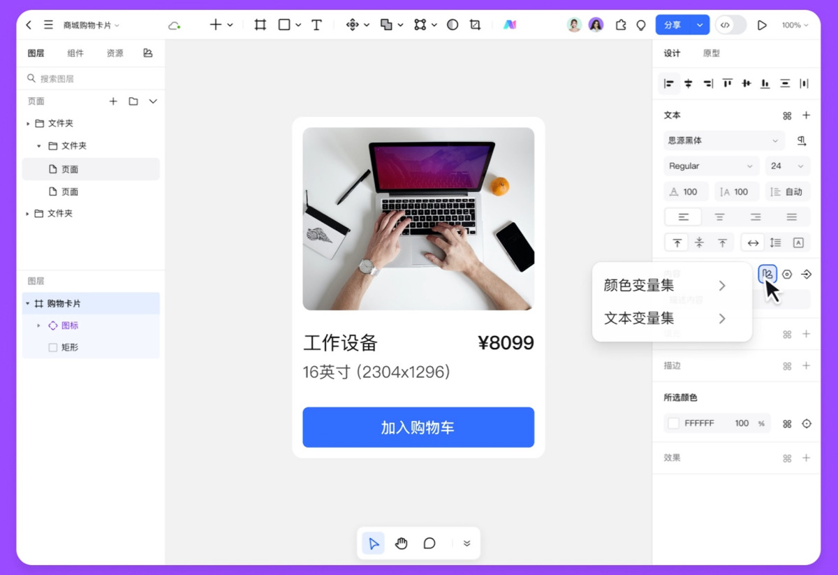 2.一体化设计系统:集中管理颜色、文本样式与组件库,一处修改,全局同步,确保项目设计的一致性与规范性。