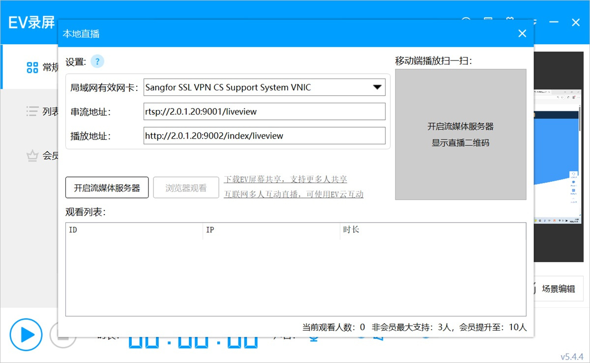 ●本地直播:支持局域网内小范围同屏观看