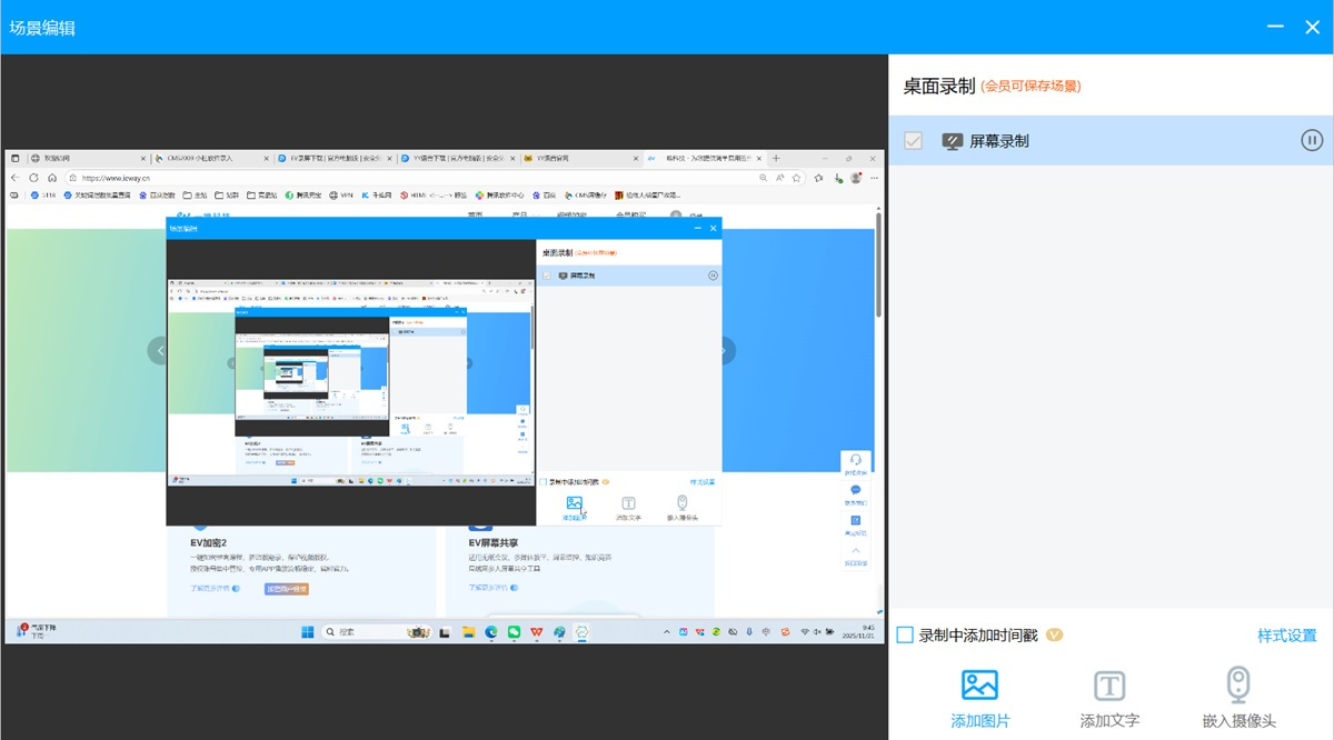 ●可自定义录制场景,自由添加文字水印,图片水印,嵌入摄像头,打造自己专属的视频标记