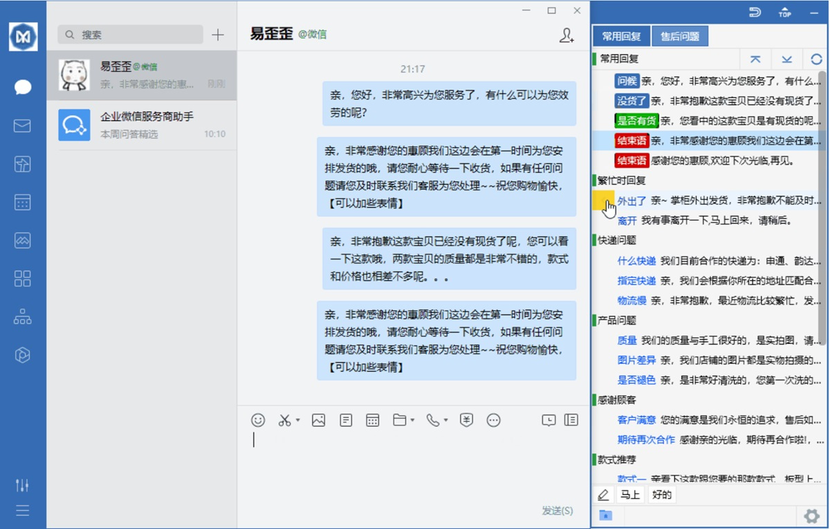 3、使用快捷回复