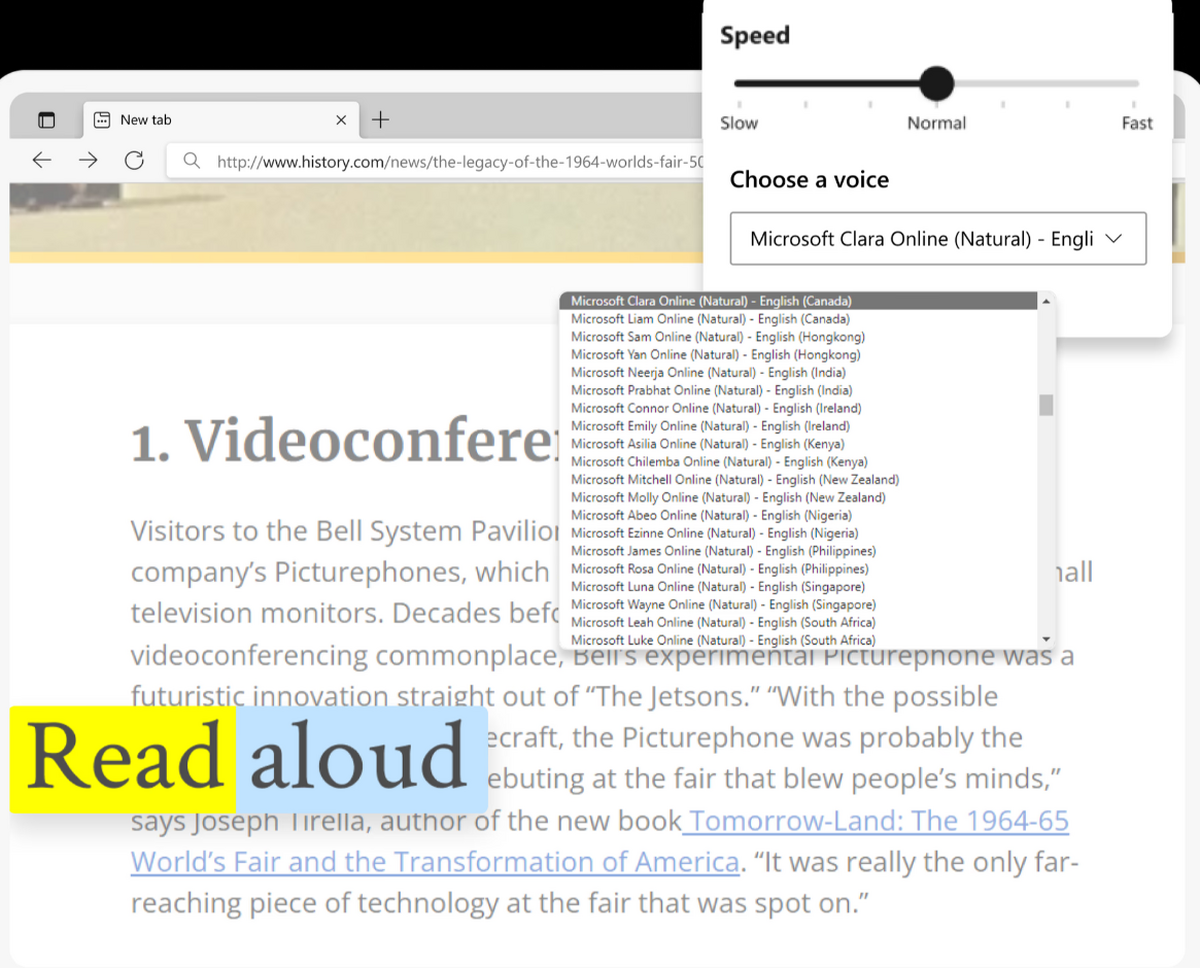 在执行其他任务时收听内容时离开屏幕,或者通过按照自己的节奏以所需的语言收听内容来提高阅读理解能力。提供各种自然的声音和口音。