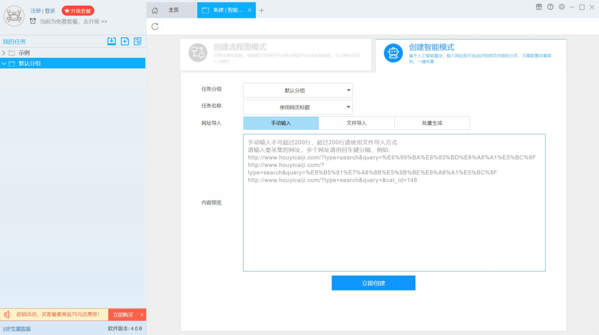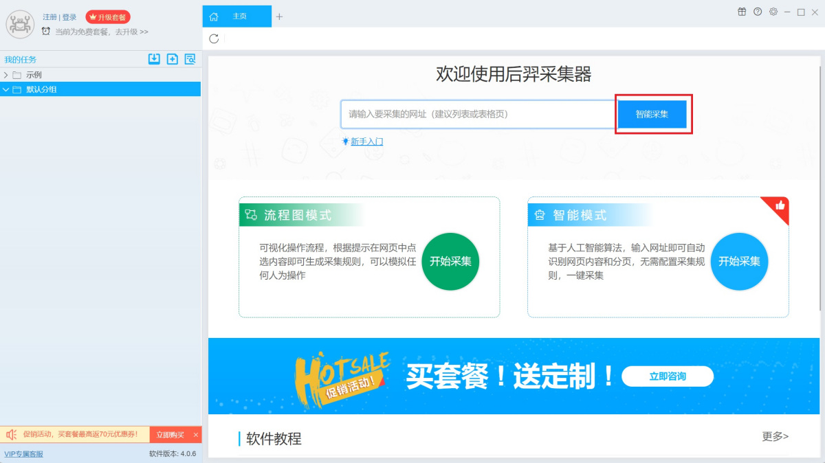 步骤1、输入要采集的网址,点击【智能采集】