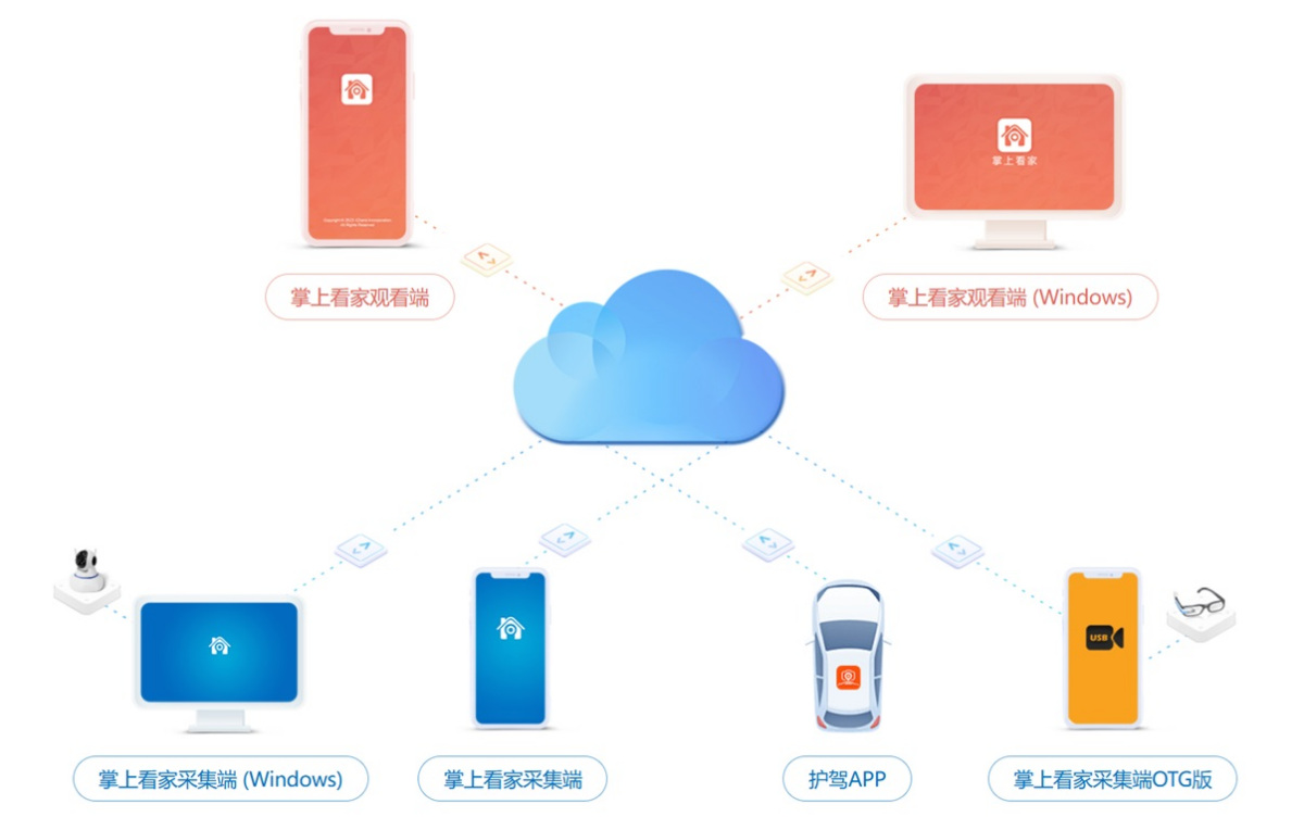 支持2G/3G/4G和无线(WiFi)全球互通互联。通过 “掌上看家” 可以随时随地查看“掌上看家采集端”设备监控到的实时音视频。