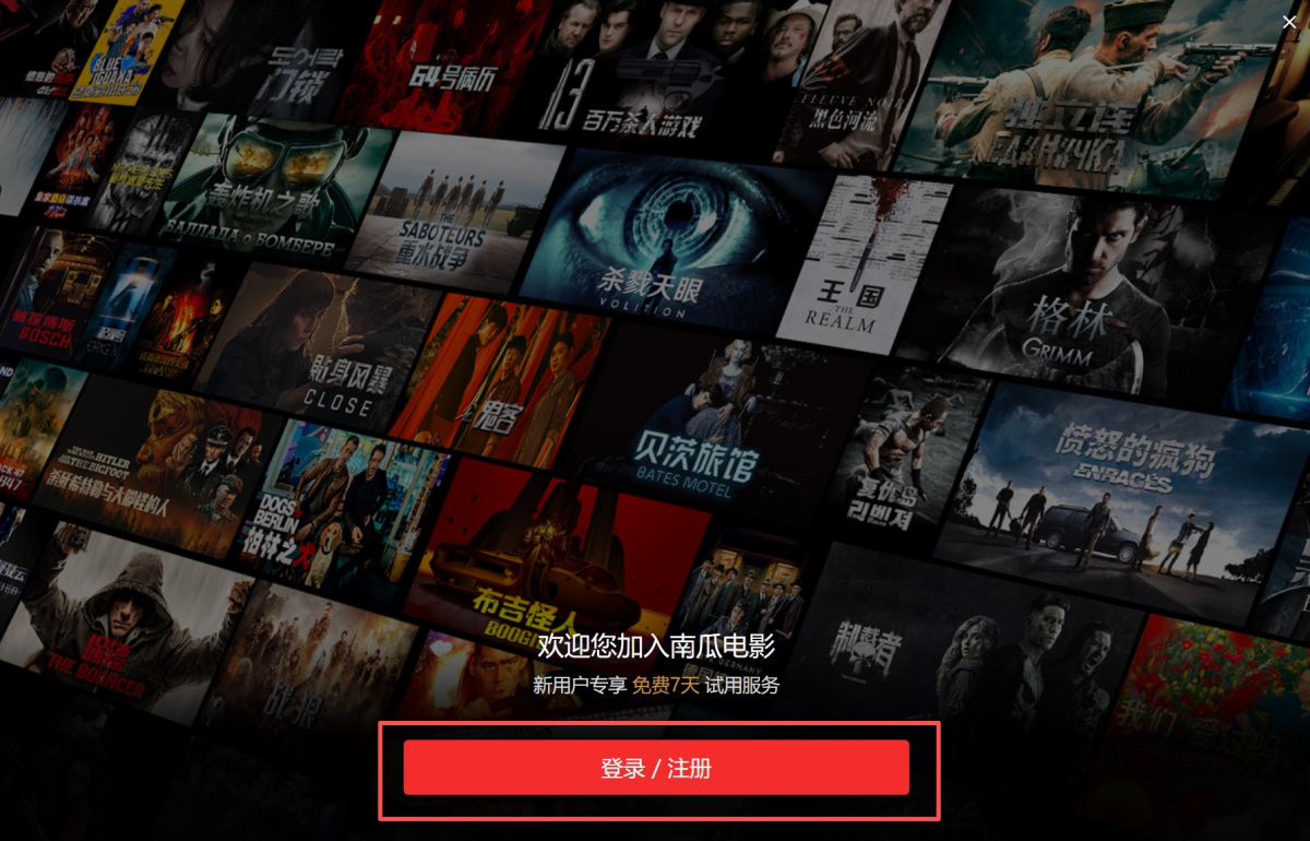 步骤1、打开南瓜电影客户端,点击 【登录/注册】,新用户登录即自动注册。