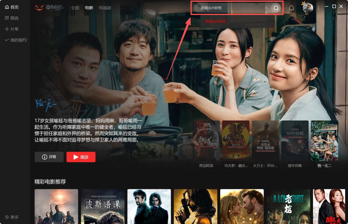 步骤2、点击界面顶部【搜索框】,搜索您想要观看的影片。