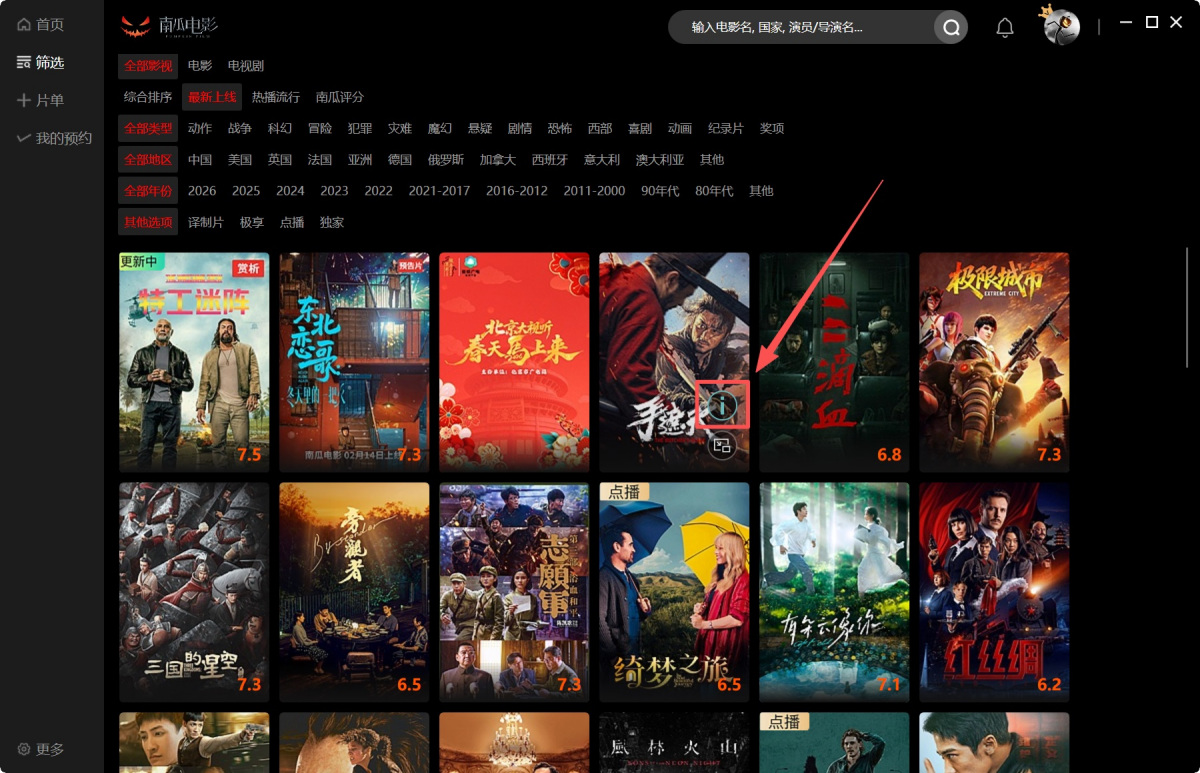 步骤1、将鼠标光标移动到影片上,点击出现的【i】图标。