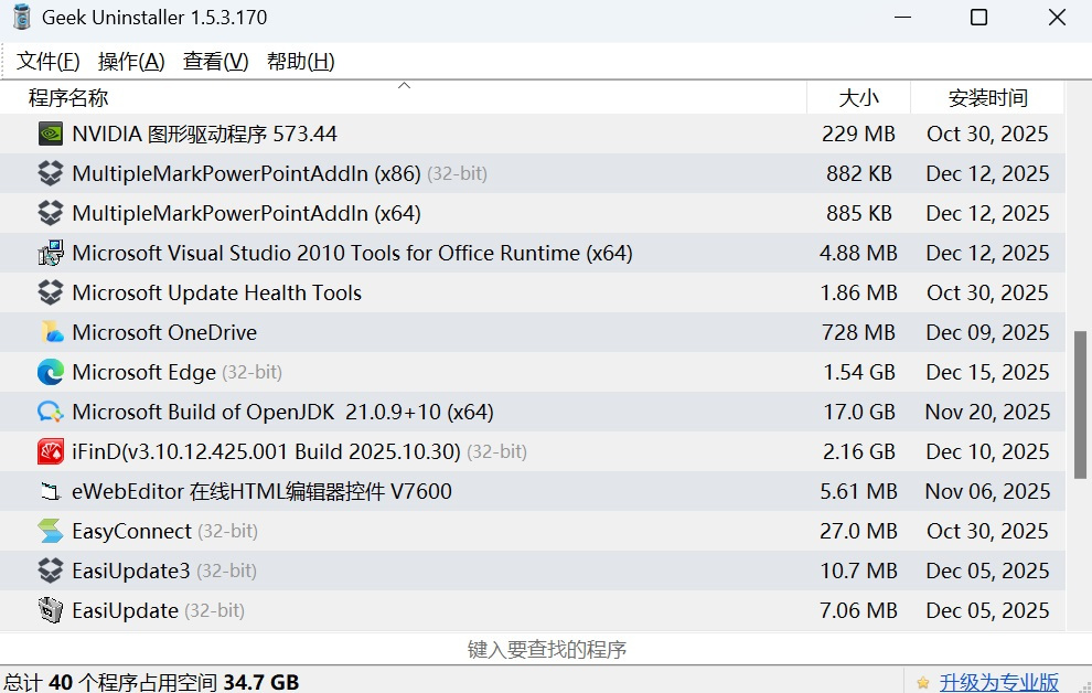 Geek Uninstaller是一款功能实用的免费、简洁、智能、强力卸载工具,在平时电脑经常会遇到随意捆绑软件,安装之后会有很多残留,遇到无法彻底卸载如何处理呢,通过这款软件一键卸载。
