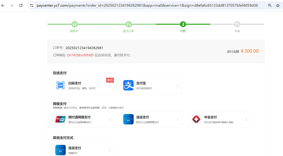 步骤2、自定义充值金额后点击”立即充值” 注:最小充值金额为300元