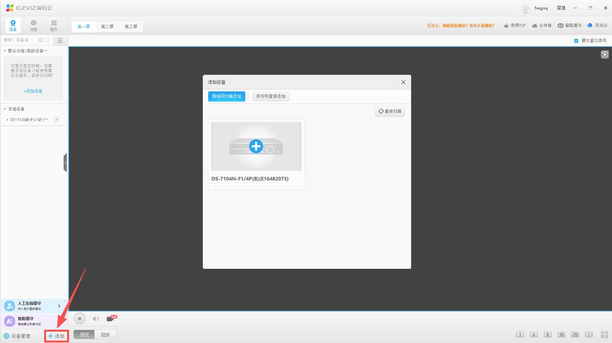 步骤4、点击客户端左下角【添加】,即可添加设备