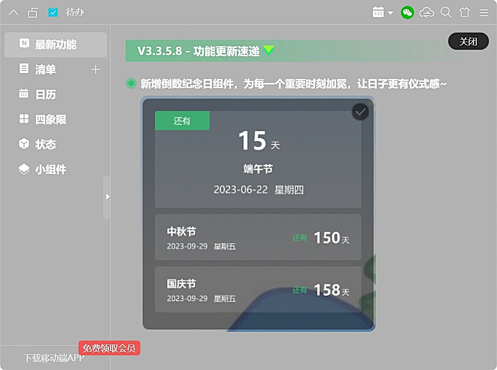 1.新增倒数日桌面小组件;