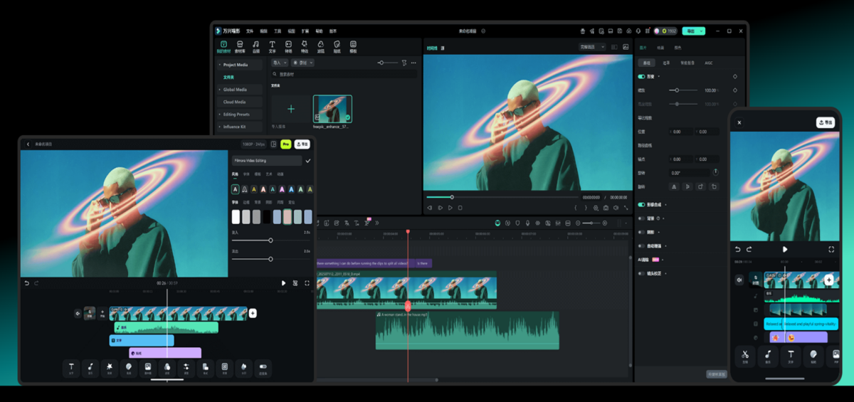 万兴喵影支持桌面端、移动端及多平台无缝衔接,让创作不受场景限制。无论身处何地,都能自由编辑、灵感随行,尽情展现你的创意。