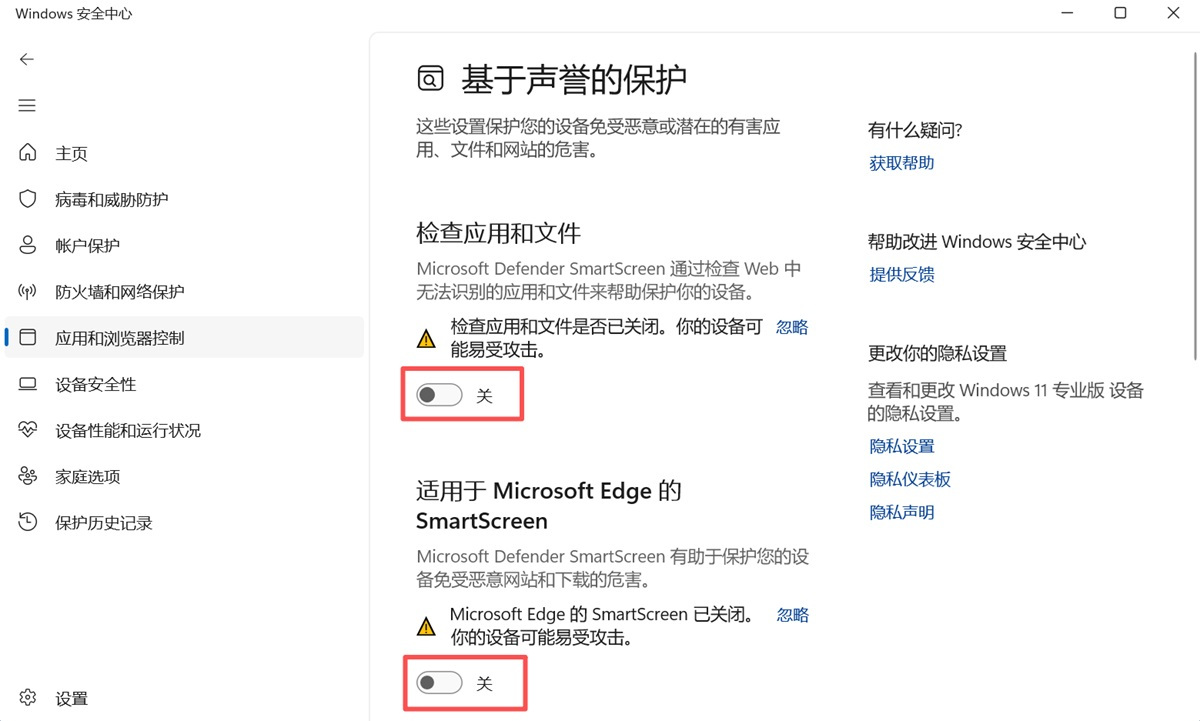●请打开Windows 安全中心,选择左侧【应用和浏览器控制】,点击【基于声誉的保护设置】