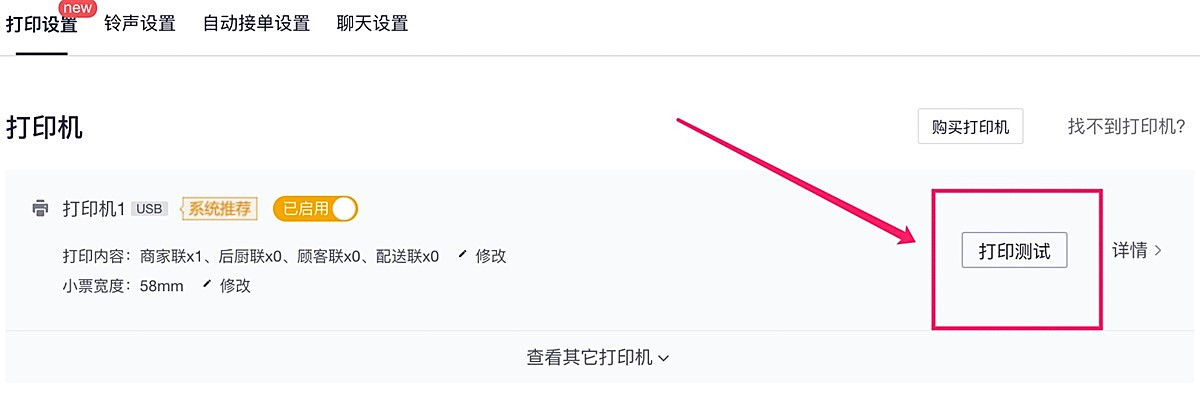 步骤3、如果没有打印出测试小票,点击“查看其它打印机”按钮