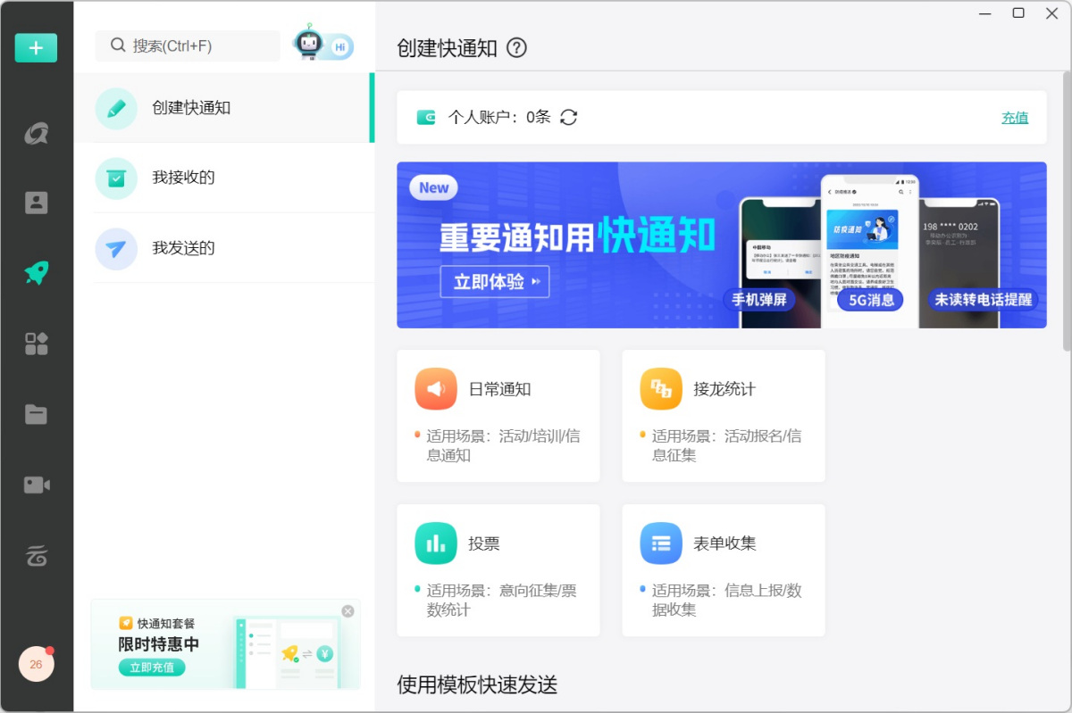 1.快通知:支持自定义编辑内容,会议通知、任务布置一键下发,提升信息传达效率。