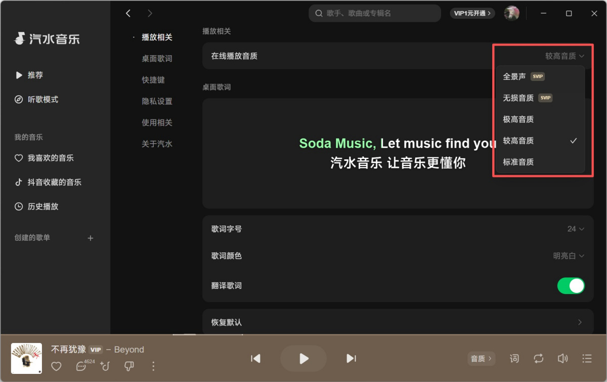 汽水音乐桌面的歌词怎么调节大小