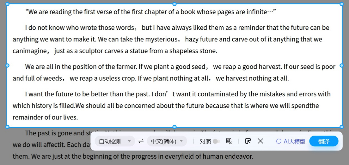 选中文本,无需复制,即可发起翻译