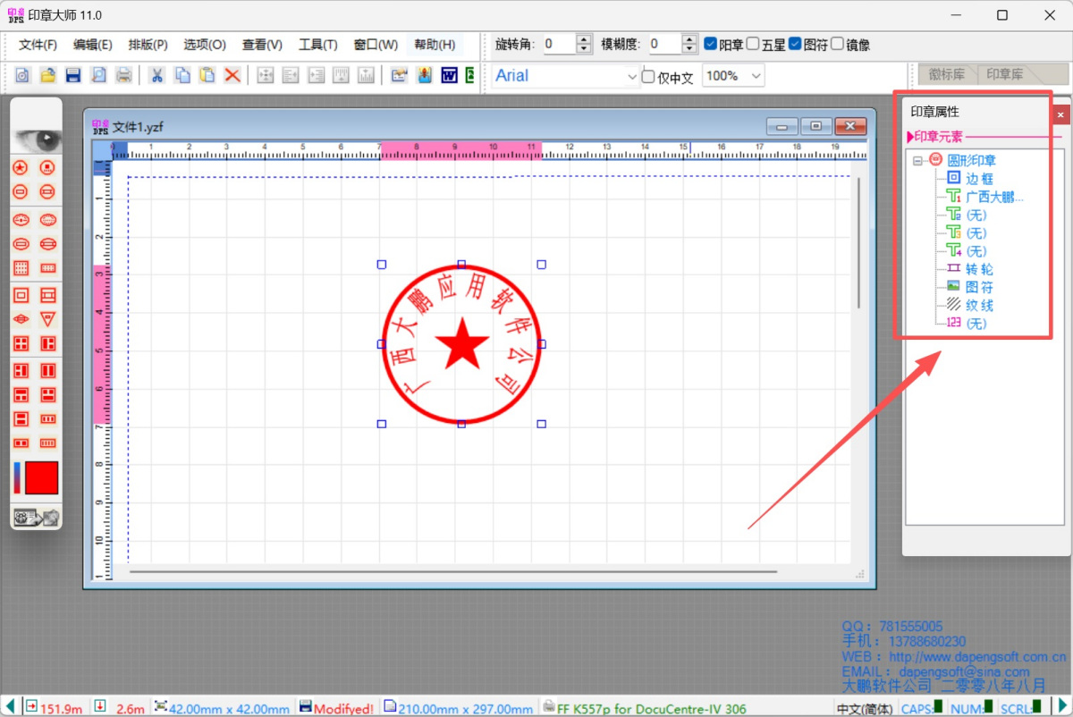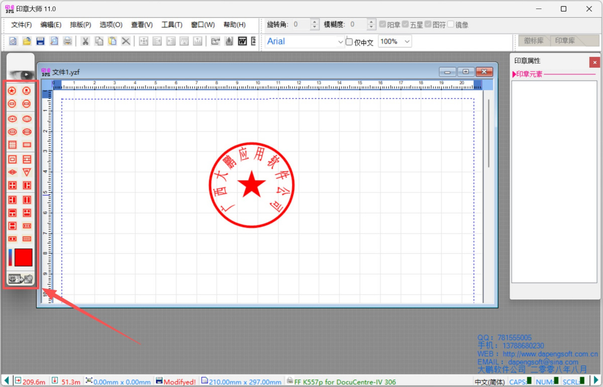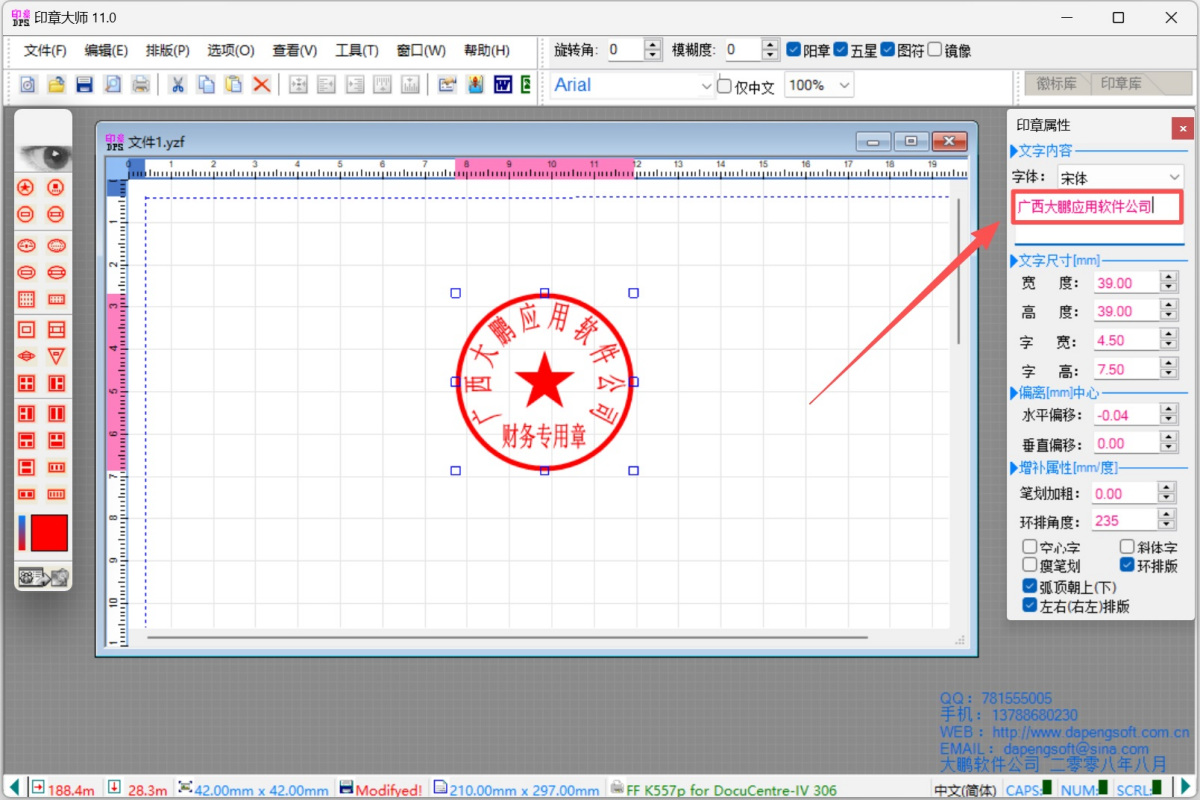 用户可以自由修改印章的大小、颜色、字体和其他属性。