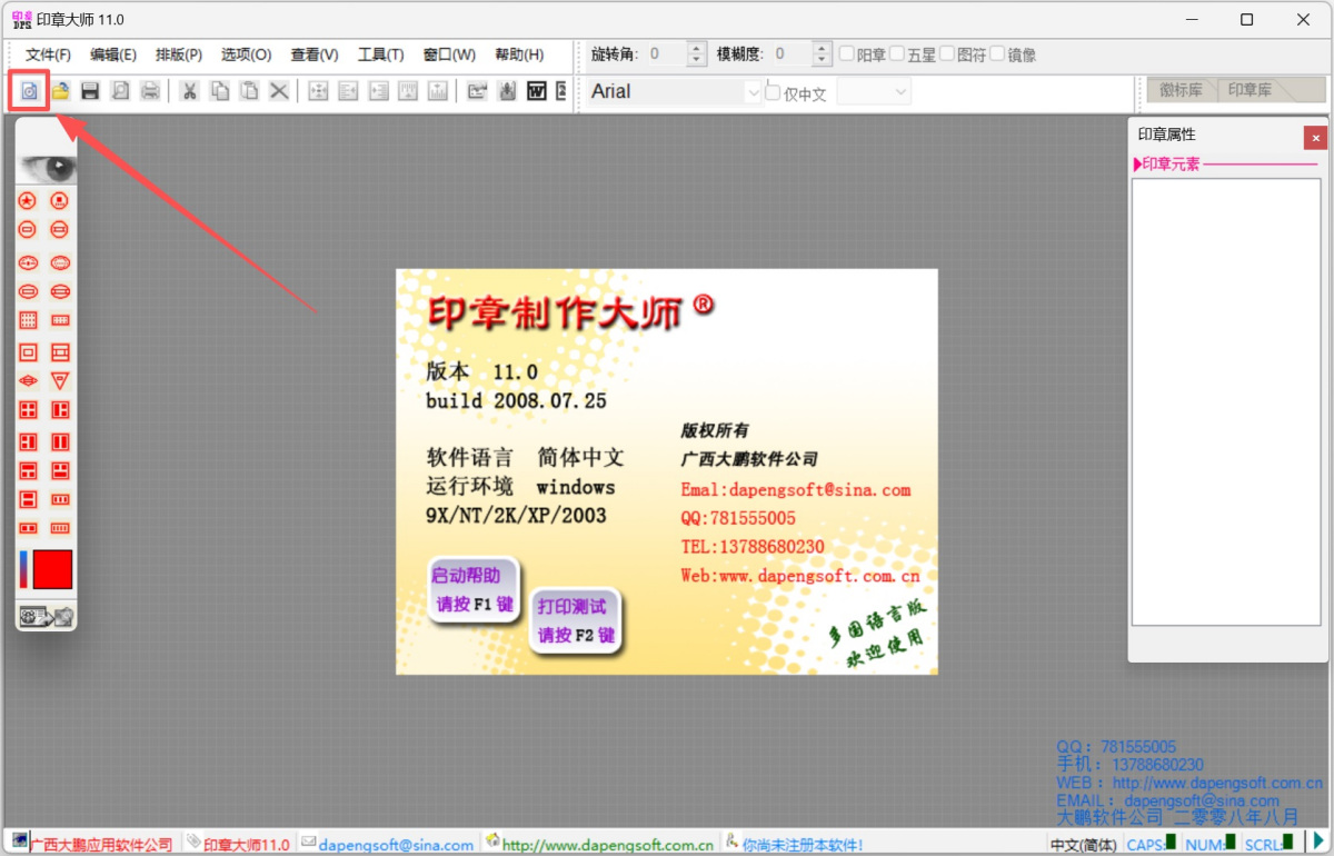 步骤1、打开印章大师客户端,点击下图所示按钮打开【设计面板】