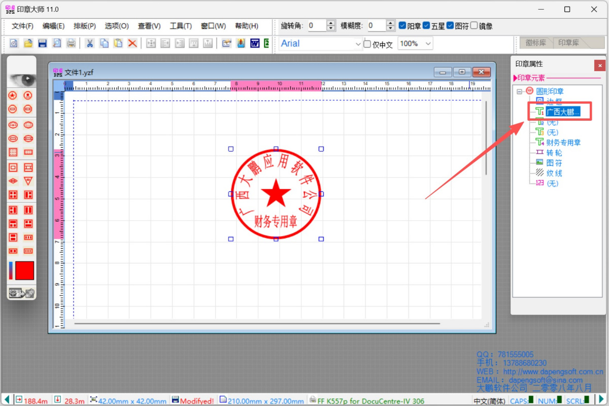 步骤3、选中印章,右侧会出现【印章属性】,在此您可以对印章细节进行编辑