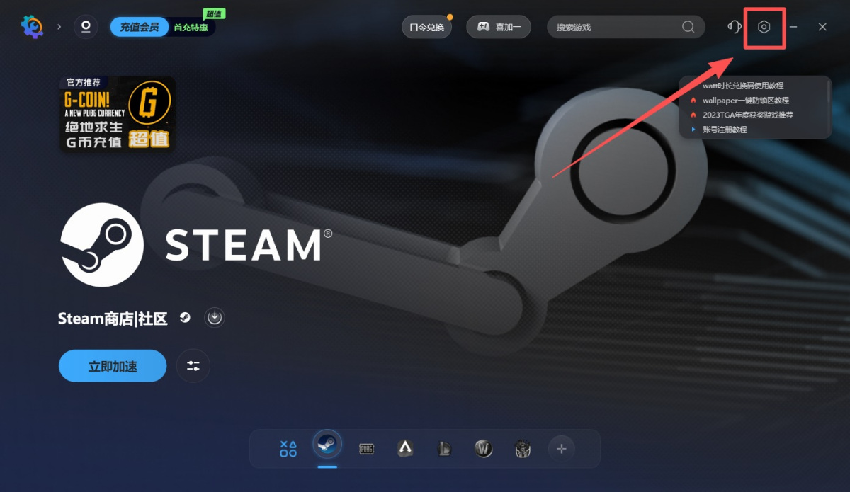 步骤1、打开Watt加速器客户端,点击右上角【设置】