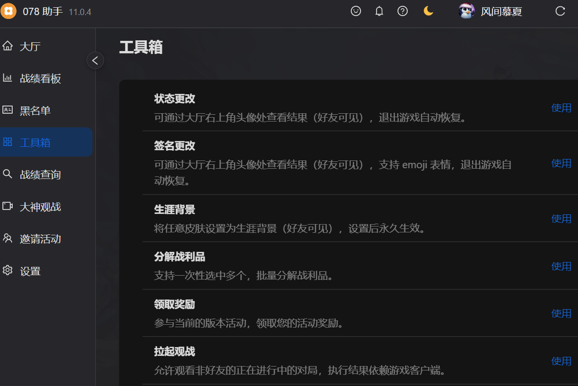专为英雄联盟玩家打造的专业工具——078助手,能为你带来全方位游戏助力。查战绩、析对局,让你每一把游戏前都知己知彼,而在账号个性化上,它支持便捷设置游戏状态,还能自定义专属个性签名,让你的账号形象更具辨识度。此外,它会主动帮你补领游戏中容易忽略的福利,避免错失应得权益;更有专属游戏大厅,方便你结识同好玩家,快速组队开黑,一同畅享峡谷对战的欢乐时光。