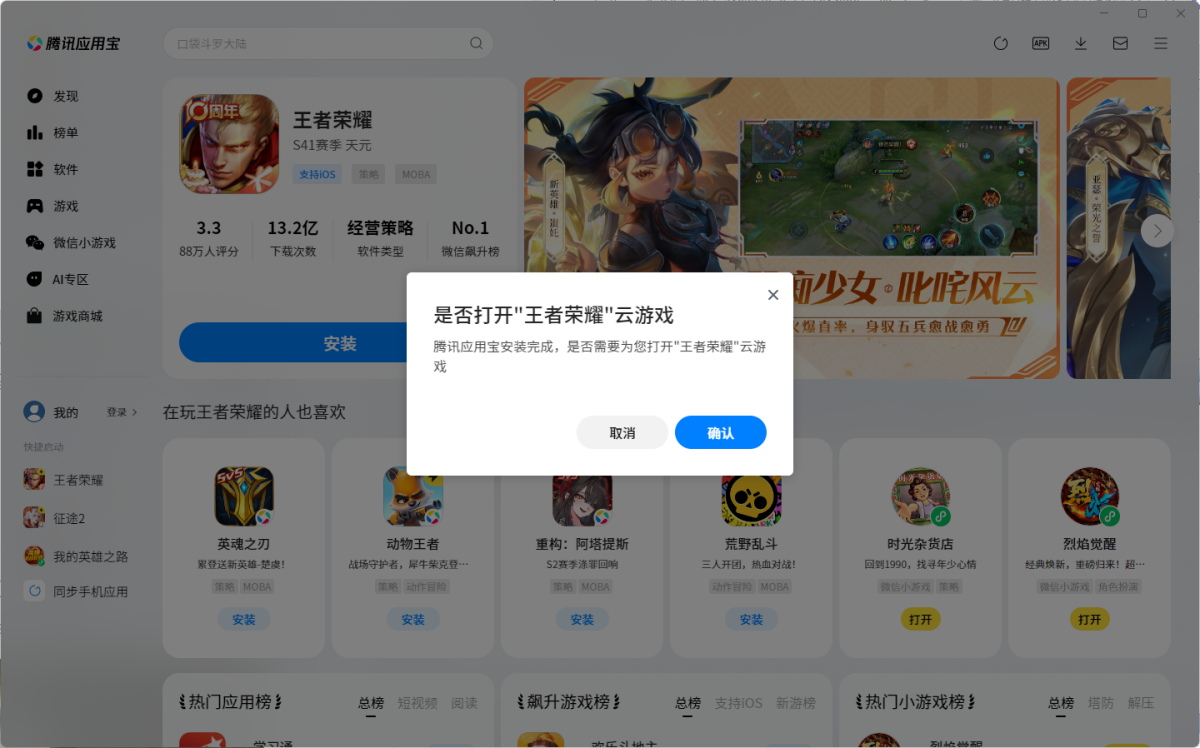 在小杜下载站下载最新安装包,按提示先安装应用宝电脑版(已安装会直接调用打开,未安装应用宝时,手机APP无法独立在电脑上运行),应用宝启动后会下载安装游戏,待安装完成后即可开始畅玩。