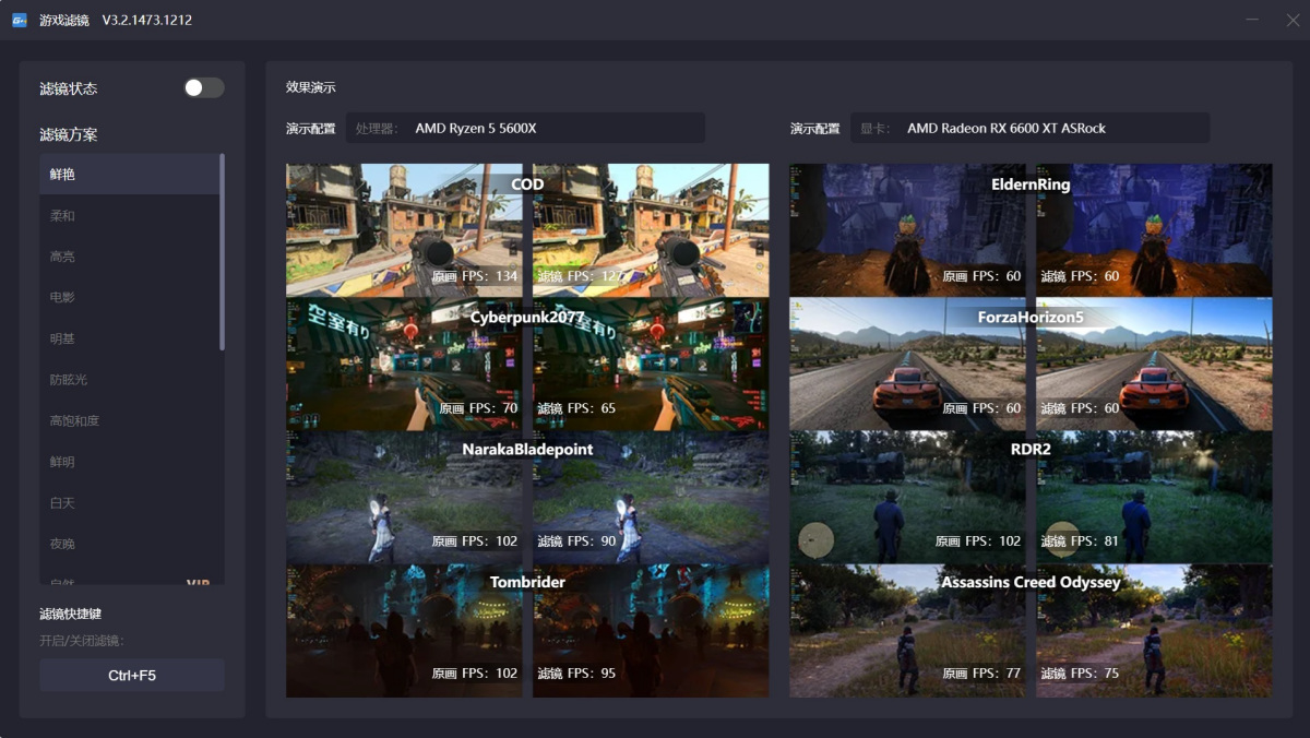 ●游戏滤镜:优化滤镜展示效果,可预览滤镜影响的帧数;