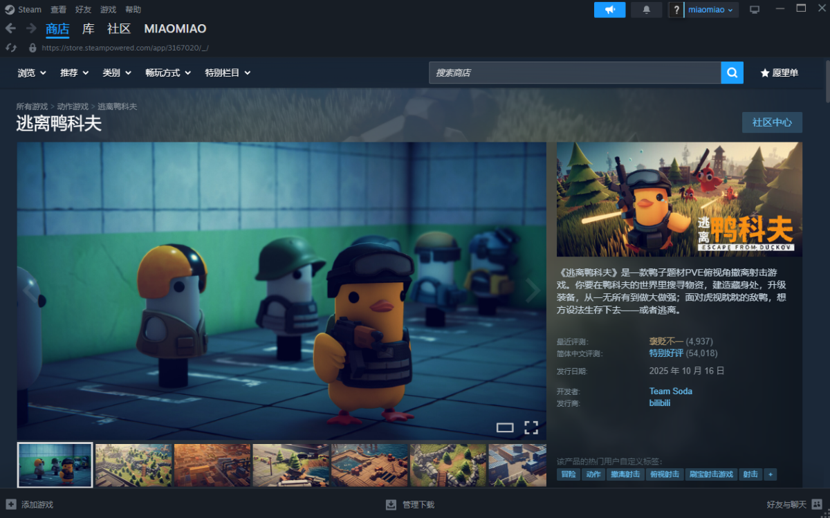 《逃离鸭科夫》(Escape from Duckov)是一款鸭子题材PVE俯视角撤离射击游戏。你要在鸭科夫的世界里搜寻物资,建造藏身处,升级装备,从一无所有到做大做强;面对虎视眈眈的敌鸭,想方设法生存下去——或者逃离。