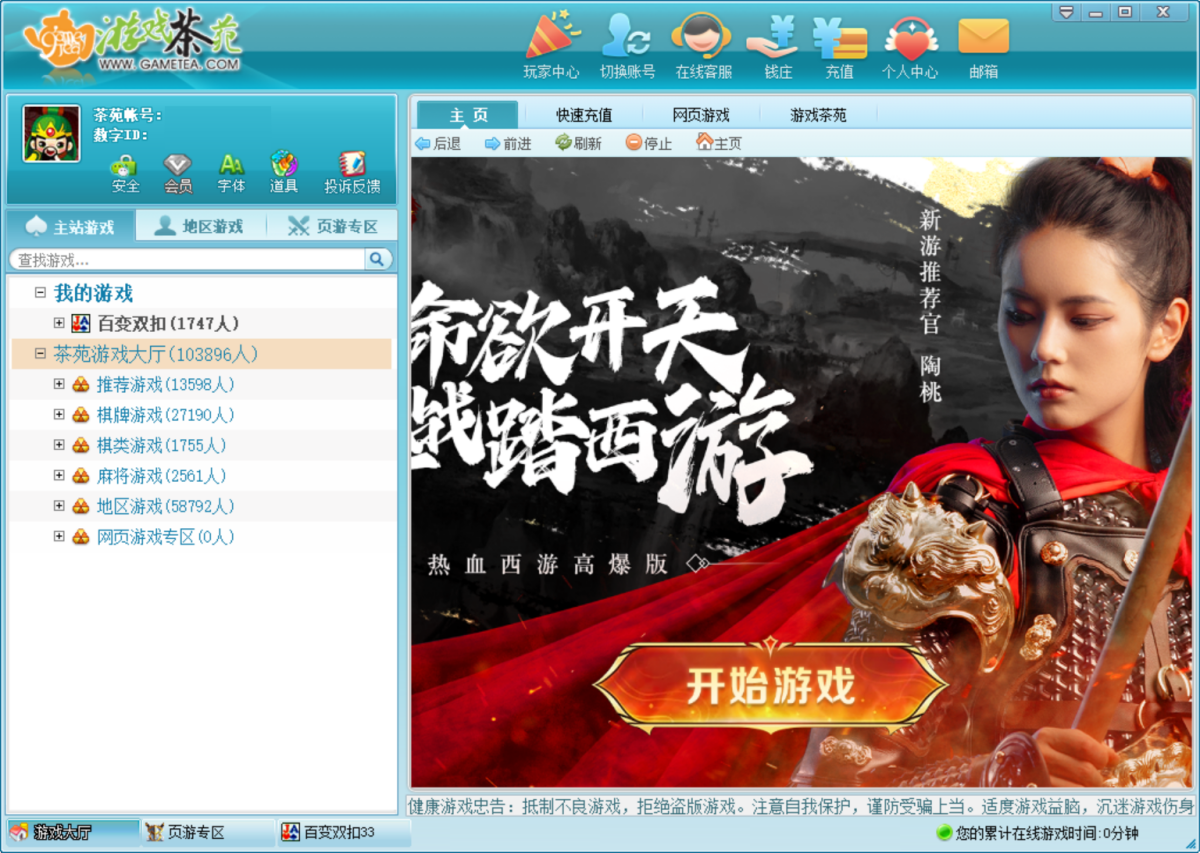 1、打开游戏茶苑客户端,在左侧【茶苑游戏大厅】中选择您想玩的游戏。